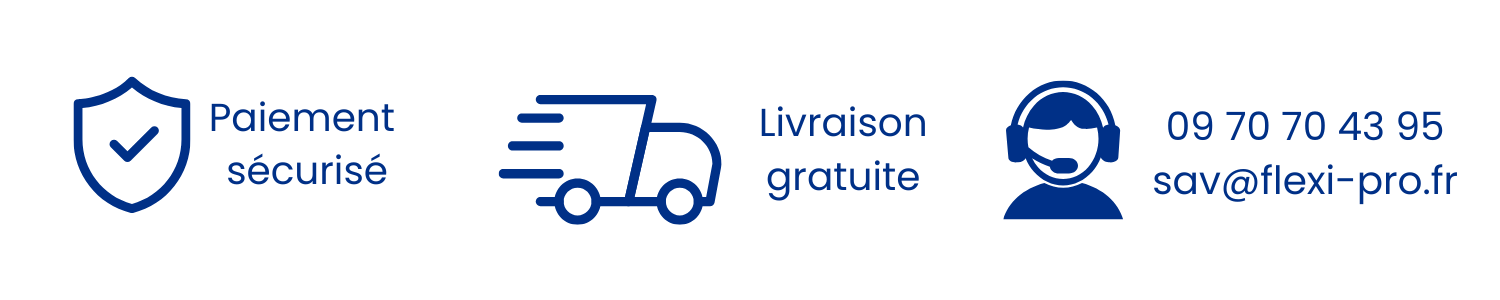 Notre service client est disponible par mail 7j/7 , 24h/24 pour répondre à vos demandes: contact@flexi-pro.fr
